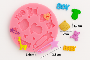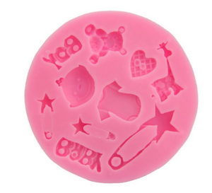 Molde de silicona para fondant y chocolate con diseños temáticos de bebé.