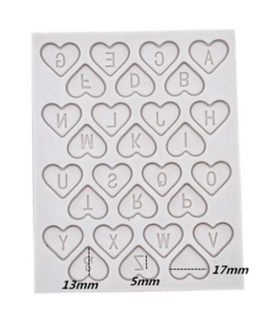Molde de silicona con letras del abecedario en forma de corazón 💕